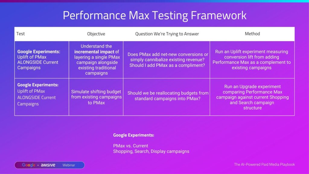 Framework 2: Performance Max, cross-channel reach with incrementality